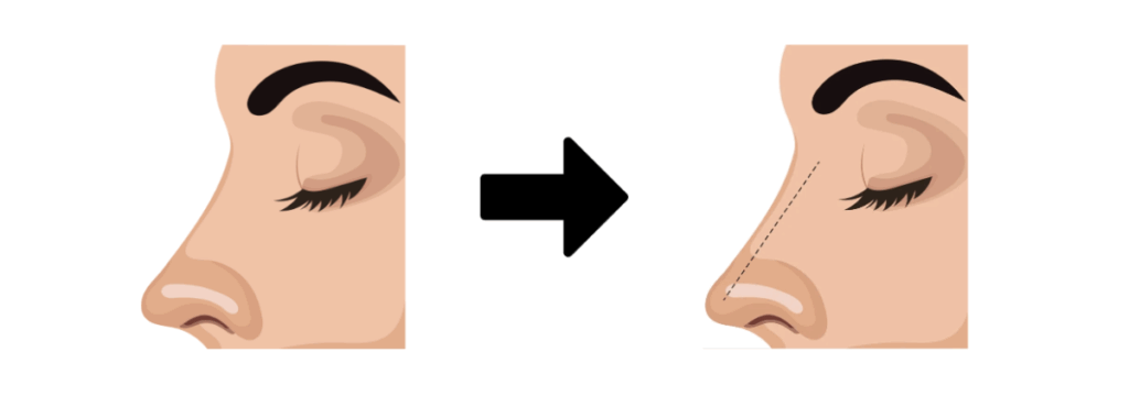 内科的アプローチとしてはヒアルロン酸注入があります。ヒアルロン酸を高さを出したい部分に挿入することで鼻の高さを出します。手軽に鼻の高さを出せる一方、繰り返し注入することで、鼻の幅が広がってしまうリスクがあります。そのため、継続的に鼻の高さを出したい場合、プロテーゼ挿入や自家組織移植を提案させていただくことがあります。