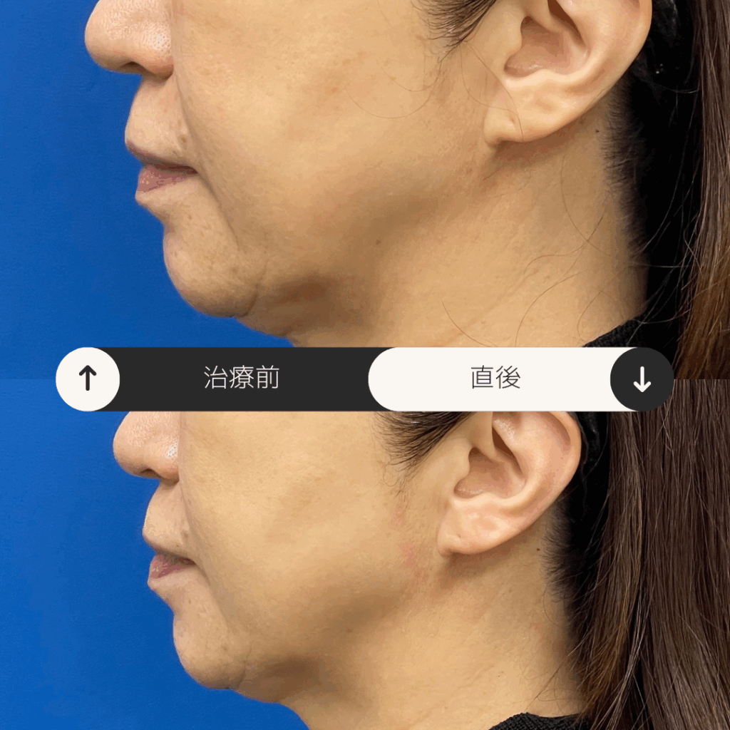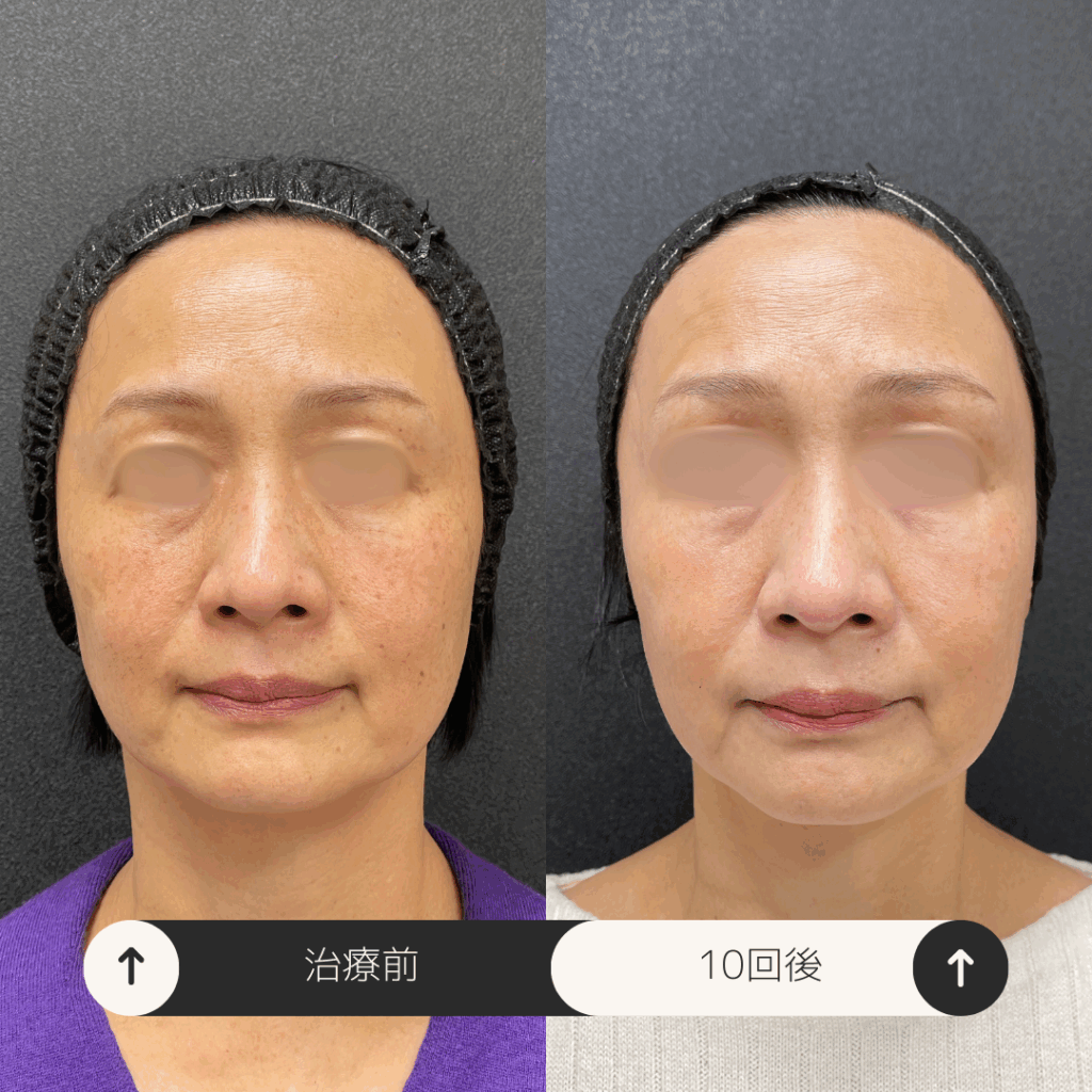 顔全体のたるみをお悩みに来院されました。糸リフトはご希望されておらず、レーザーなどマイルドな治療をご希望されていたので、小ジワやたるみなど年齢特有の悩みに効果を発揮するトリニティプラスを施行しました。1度の治療では変化は大きくありませんが、回数を重ねることで効果が発揮されます。