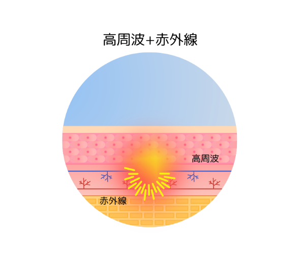 IRのみでは真皮層に作用する力が弱く、効果が限定的でしたが、RFを組み合わせることで相乗効果により、真皮深層まで熱エネルギーが伝わるようになりました。