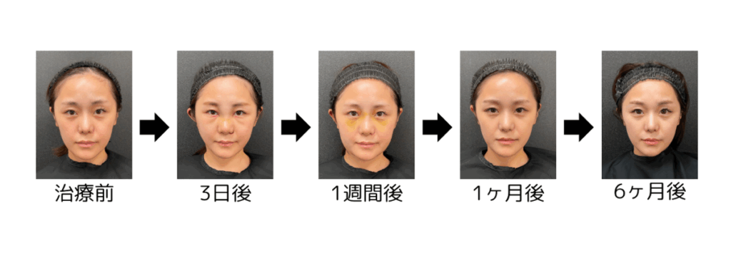 治療後、皮膚が引っ張られているような感覚がありますが、通常は1ヶ月程度で改善します。傷口は、手術から2〜3ヶ月で赤みが収まり、徐々に白くなっていきます。ケロイド体質の方は稀に傷口が盛り上がってしまう場合がありますので、事前に担当医にご相談ください。