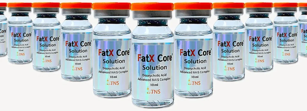 Fat X Coreは脂肪を破壊する成分であるデオキシコール酸が1.0%含まれています。脂肪溶解の過程で起こる、腫れ・痛みを抑えるためにNAIS complexという抗炎症効果などのある成分が含まれています。そのため術後のダウンタイムが短く抑えられるのも特徴です。