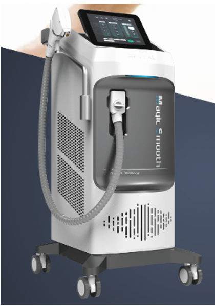 当院ではMagic smoothという機械を採用しています。最大の特徴は、755nmアレキサンドライト・808nmダイオード・1064nmヤグレーザーの3つの波長を同時に照射することが可能な点です。これによりあらゆる毛質に対して効果的に脱毛が可能です。また、照射のスピードが早く1回あたりの治療時間を短縮できる点も特徴です。
