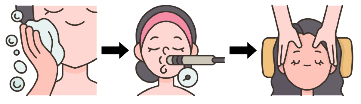 - ピーリング製剤を塗布しながら、同時に汚れを吸引します。