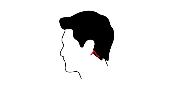 - 耳の後ろから襟足にかけて切開します。